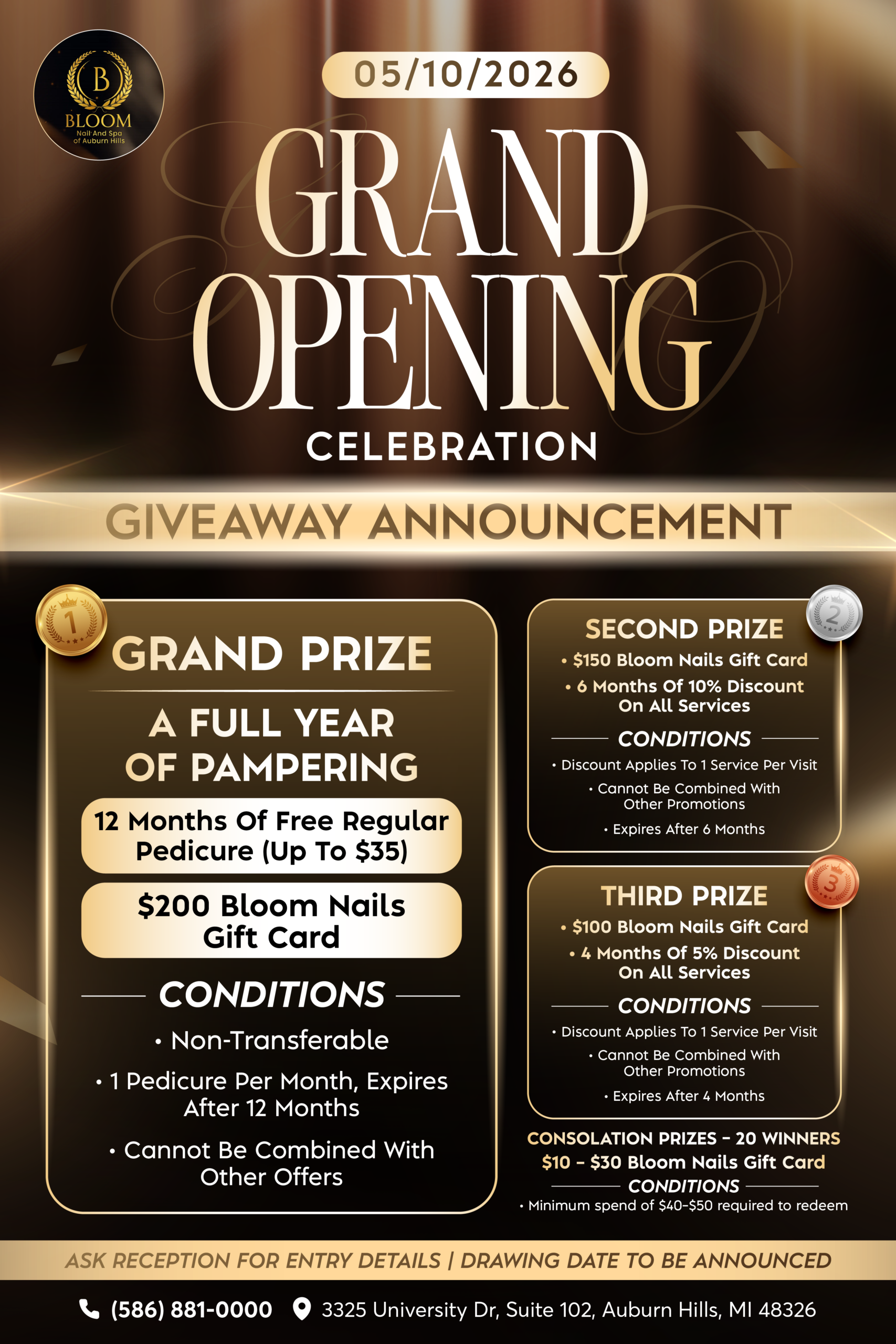 Welcome to Bloom Nail and Spa in Auburn Hills, MI. We’re located at 3325 University Dr, Suite 102, Auburn Hills, MI 48326, where we provide quality nail care in a clean, relaxing environment. Our services include manicures, pedicures, acrylic nails, dip powder, nail art, and waxing. We focus on doing great work while making sure you feel comfortable and cared for. Whether you’re coming in for a quick polish change or a full set, we want your visit to be something you look forward to.